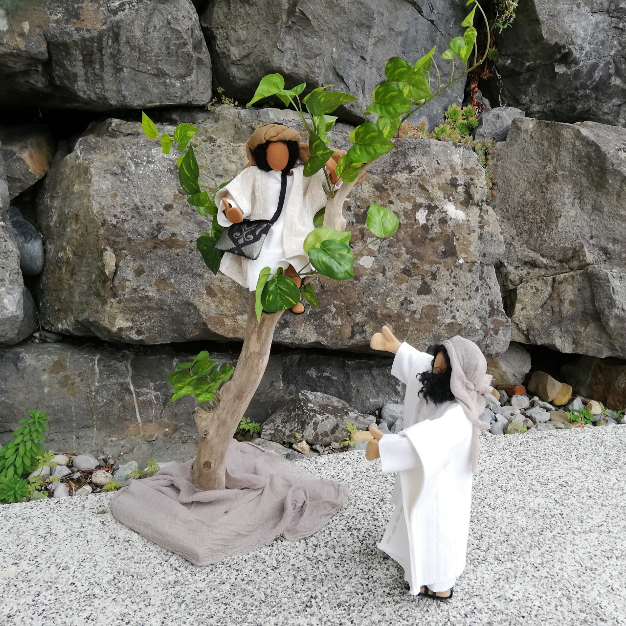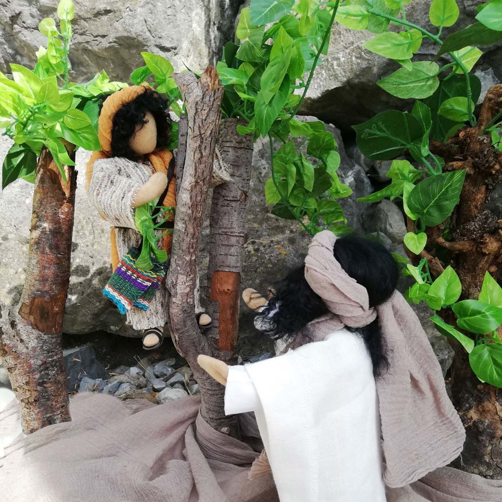 Ideal zum Erzählen der Geschichte von der Begegnung Jesu mit dem Zöllner Zachäus. Es ist die Geschichte von Erkenntnis gewinnen, Reue zeigen, Wiedergutmachung und göttlicher Vergebung. Aber natürlich spenden unsere schönen Bäume auch allen anderen Erzählfiguren Schatten.
