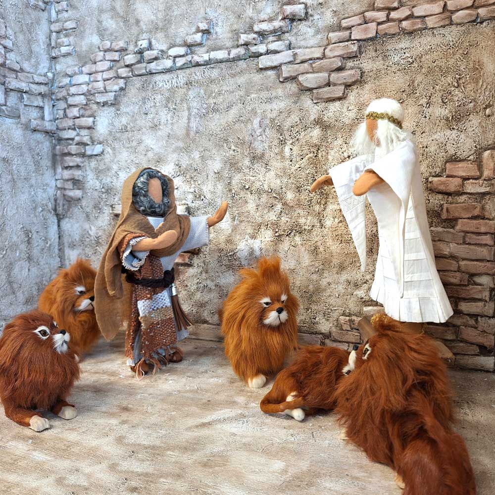 Daniel war als Berater des Königs Darius ein angesehener, wohlhabender Mann. Doch als Daniel nicht davon ablassen will, Gott anzubeten anstatt des Königs, lässt dieser ihn in eine Grube voller wilder Löwen werfen. Doch Gott sendet ihm einen Engel, der ihn schützt, und so lassen die Löwen Daniel unbeschadet.