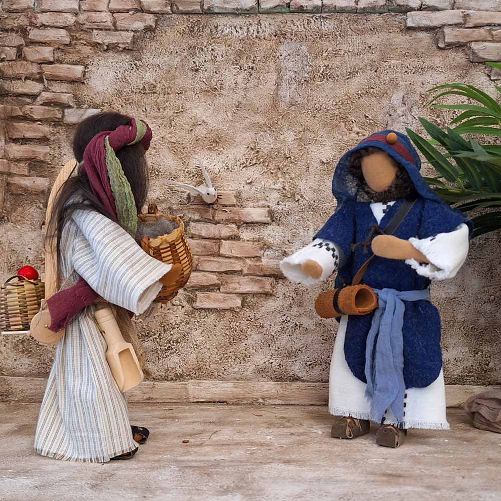 Jakobus war einer der fünf Fischer am See Genezareth. Wir halten ihn neutral, damit er auch zur Gestaltung der Adventszeit gut als Hirte verwendet werden kann und schließlich an Weihnachten den Weg zur Krippe findet.