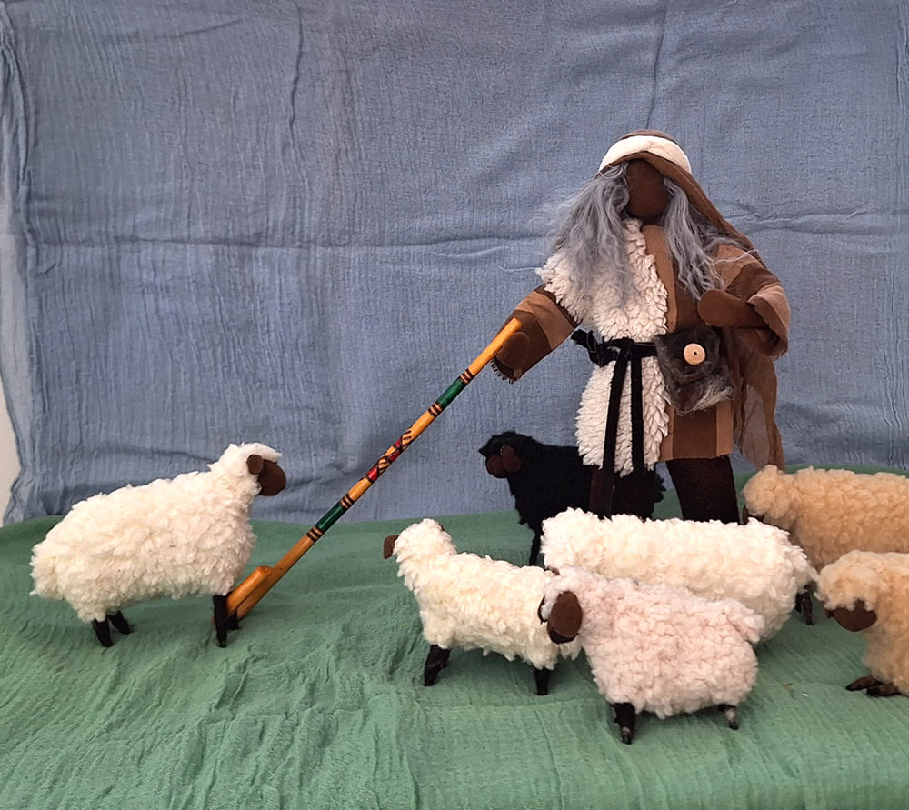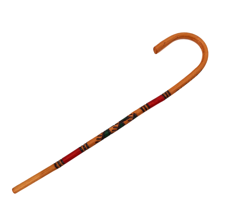 Hirten tragen Stäbe mit großem Bogen, der es ihnen ermöglicht, die Haken der Schafe zu umschlingen und sie so einzufangen und zu sich her zu ziehen. Auch für einen Wandersmann ist dieser Stab ideal geeignet.