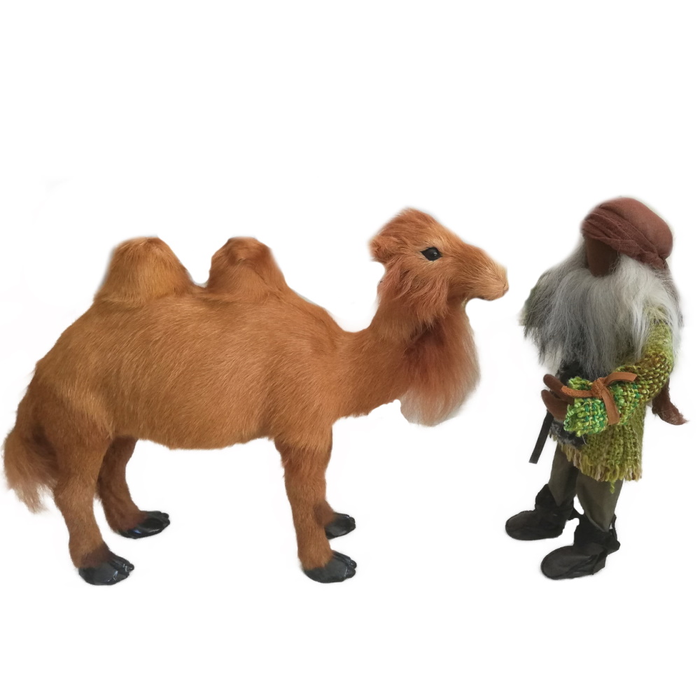 Dieses Kamel ist 26cm hoch und 30cm lang und für unsere 30cm hohen Erzählfiguren im Teenageralter, denn ein ausgewachsenes Kamel überragt einen Menschen um ein bis drei Kopflängen.