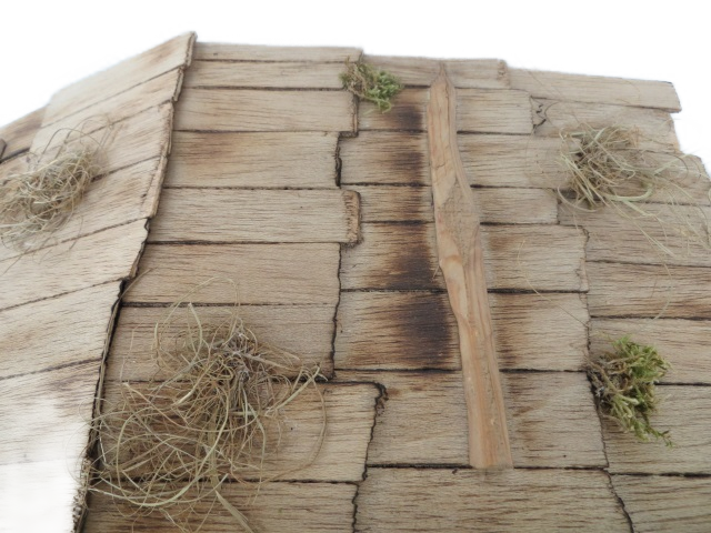 Beim Transport können kleine Holzlatten oder eine Schindel abgehen. Die befestigst du dann bitte einfach wieder mit Heißkleber oder einem Nagel. Dankeschön!