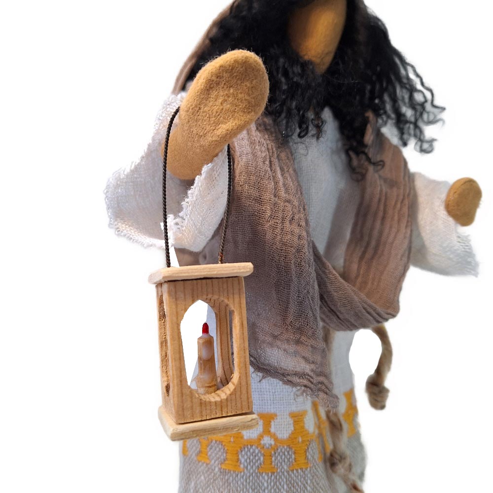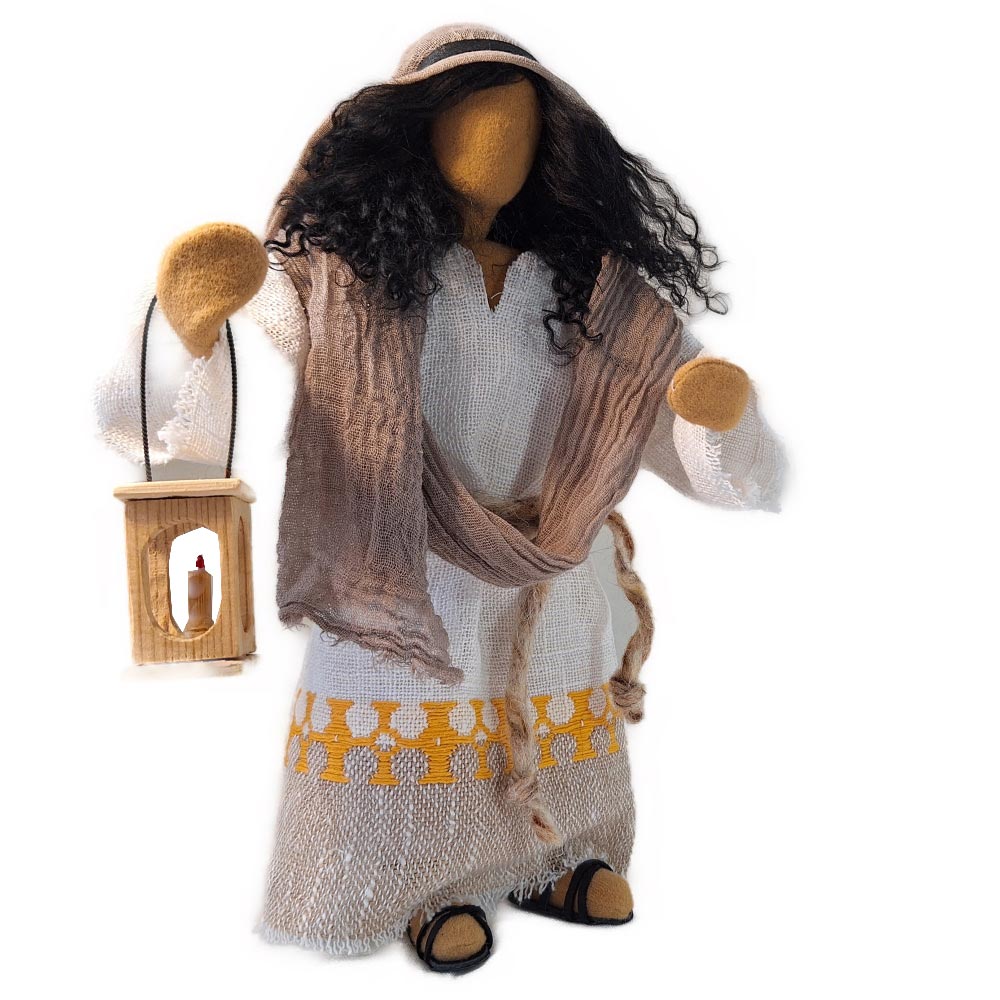 Josef trägt in der Grundausstattung eine schlichte Kopfbedeckung. Gerne wird der Heilige Josef mit Hut dargestellt. Wir filzen ihn von Hand und wenn du ihn möchtest, bestelle ihn bitte separat dazu. Wir gestalten dann die Figur mit Hut.Du erhältst die im Inland handgefertigte Laterne sowie den handgeschnitzten Stab dazu.
