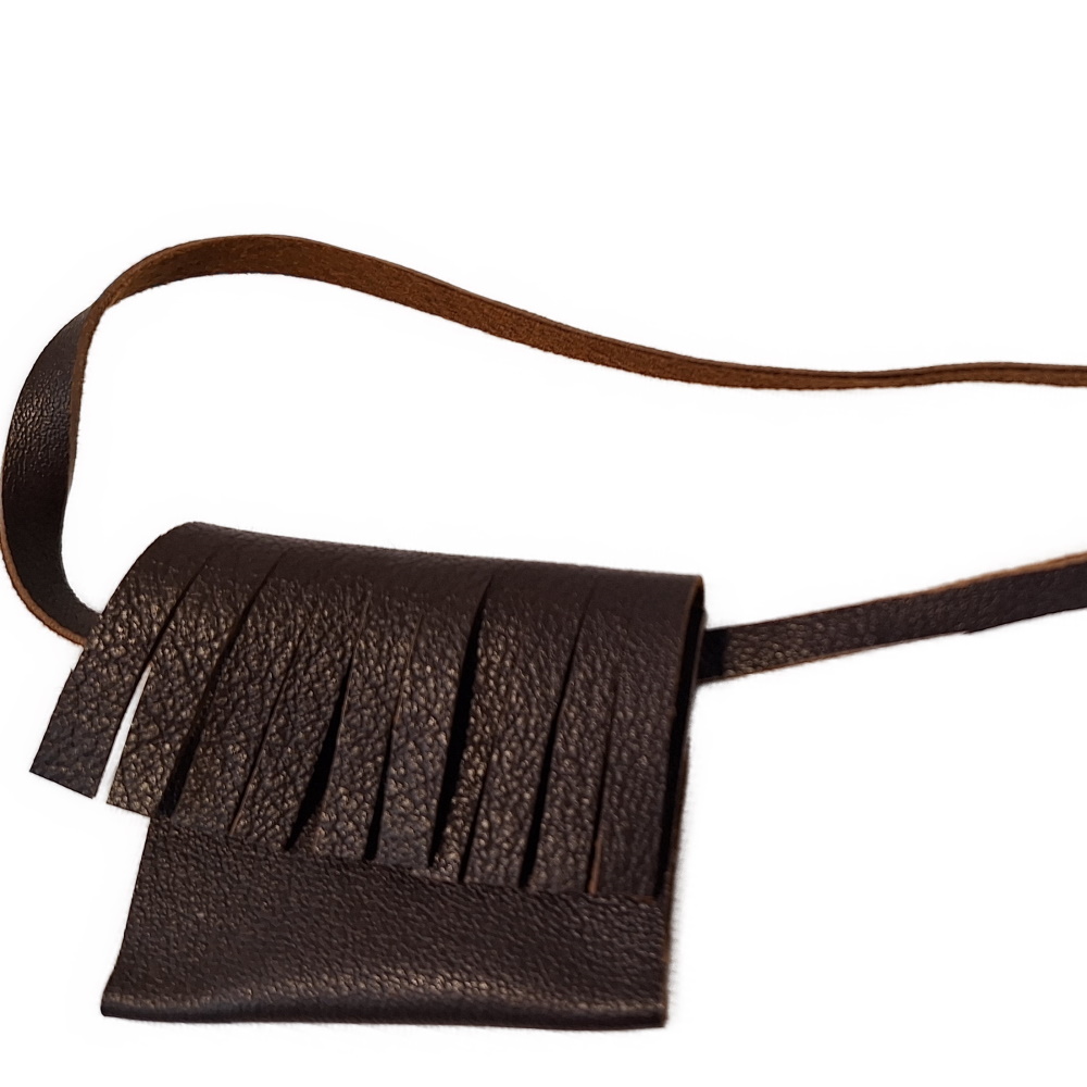 Real befüllbare Tasche aus Echtleder, das immer etwas variieren kann. Vorne sind schöne Fransen und auch der Träger ist aus Leder. Wir fertigen die Taschen in unserem Atelier.