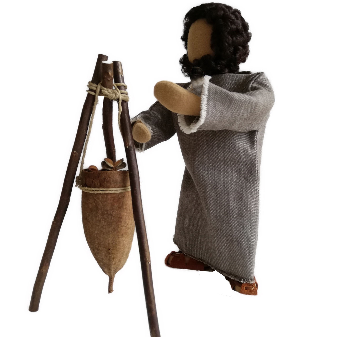 Jakobus war einer der fünf Fischer am See Genezareth. Wir halten ihn neutral, damit er auch zur Gestaltung der Adventszeit gut als Hirte verwendet werden kann und schließlich an Weihnachten den Weg zur Krippe findet.