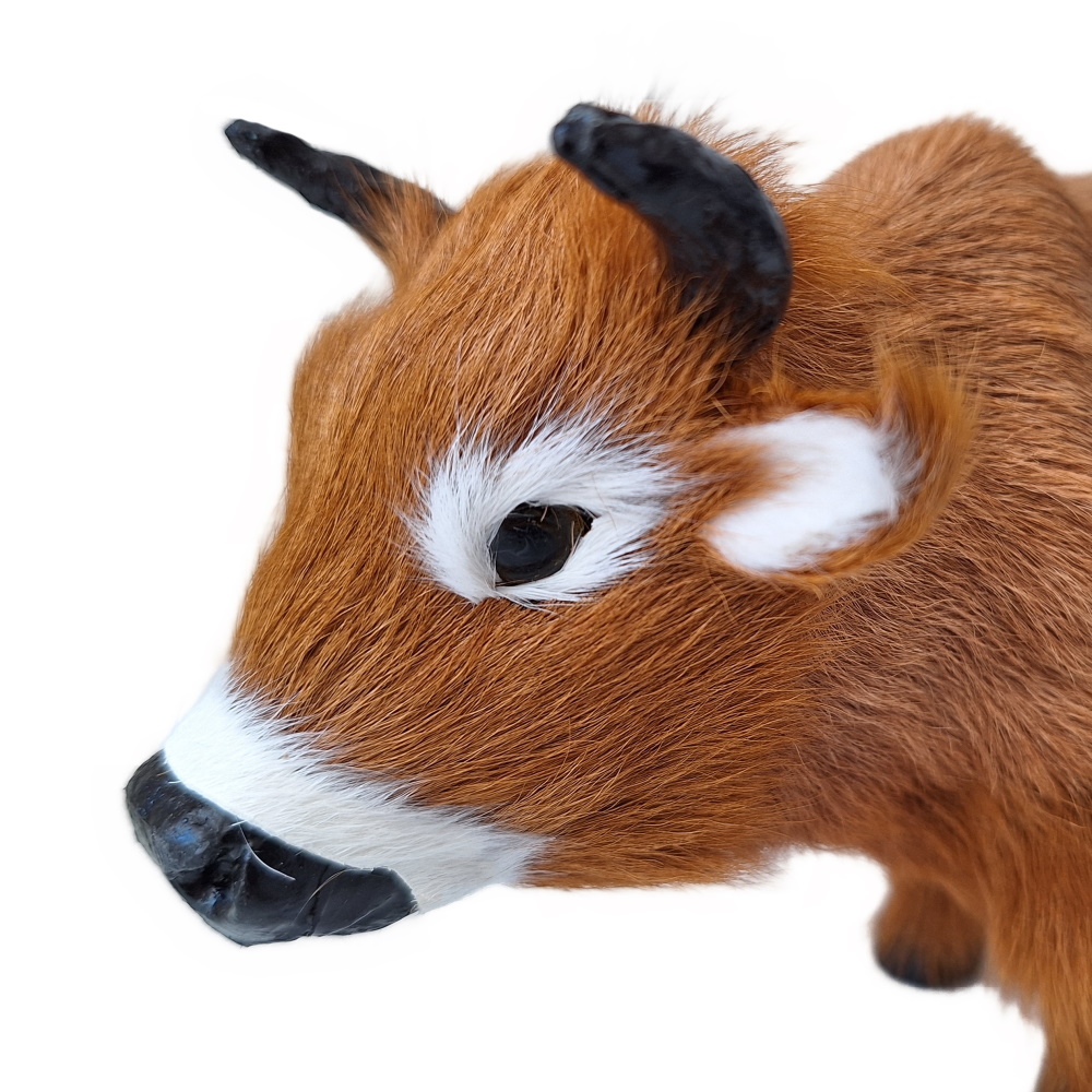 Das stehende Tier ist zu den Erzählfiguren ein Kalb. Für Figuren mit einer Höhe von 12-15cm Größe kann es als Ochse in die Weihnachtskrippe verwendet werden.Die Kuh/der Ochse ist sehr detailreich aus Rinderfell gefertigt.