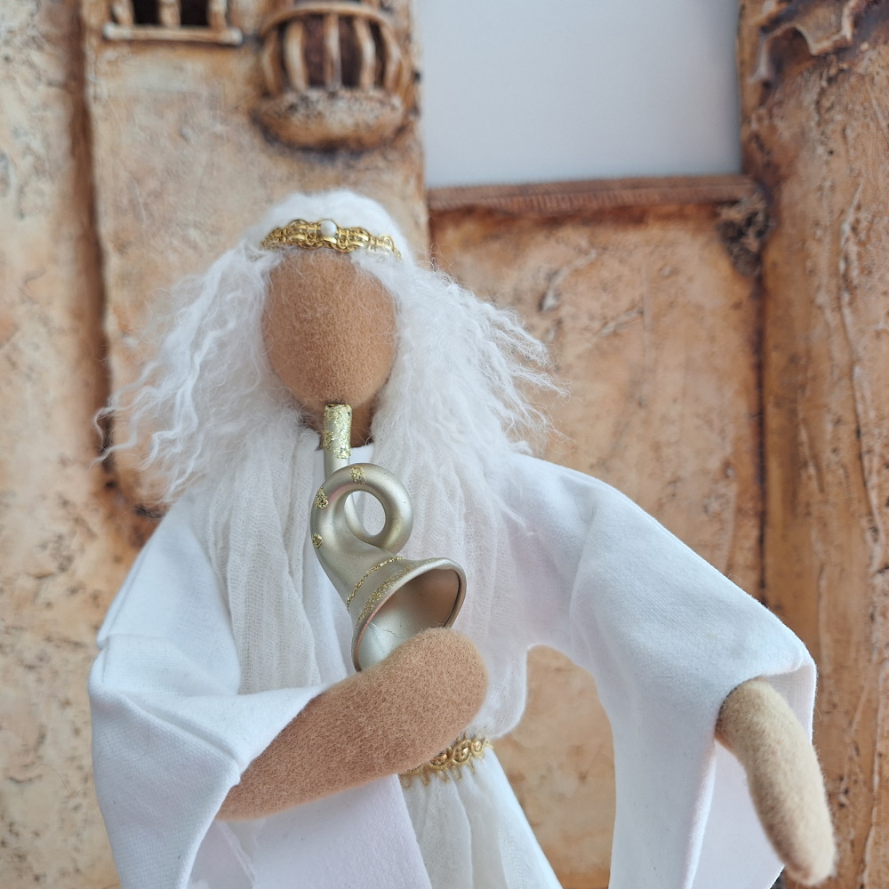 Erzengel Gabriel erstrahlt in Klarheit und Licht. Er ist anmutend in seinem schön genähten Kleid mit den langen Ärmeln und dem schönen Gürtel. Maria ist von ihm angetan, wenn er ihr die überraschende Botschaft verkündigt. Die Hirten auf dem Feld haben sofort Vertrauen in ihn und in jeder Weihnachtskrippe strahlt er Liebe und Zuversicht aus.Für den Engel gibt es verschiedene Musikinstrumente, die du gerne dazu bestellen kannst.