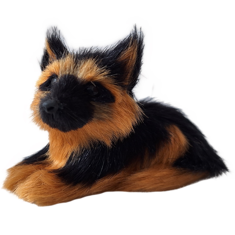 Der Schäferhund sieht sehr authentisch aus, wie er da friedlich am Boden liegt. Er ist sehr schön und detailreich aus Plüschstoff, der fast aussieht wie echtes Fell, gefertigt.