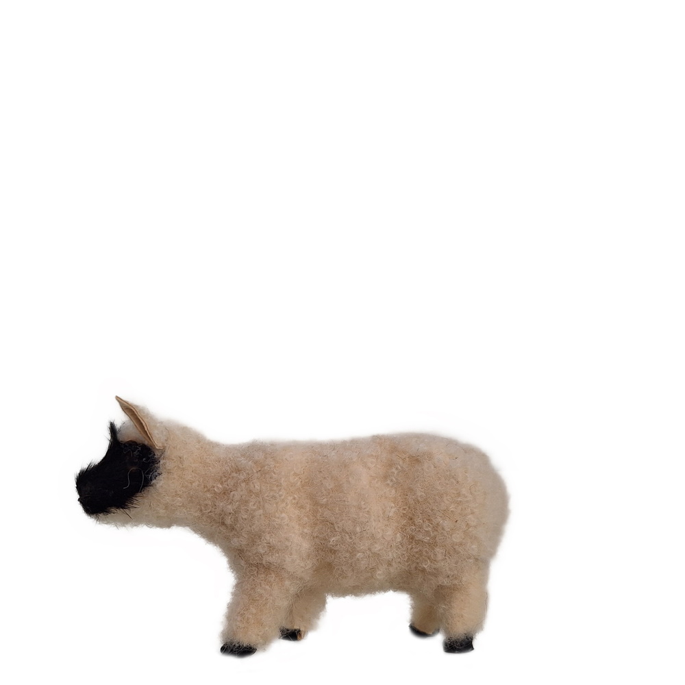 Dieses stehende Lamm ist 9cm lang. Es hat ein dunkles Gesicht.