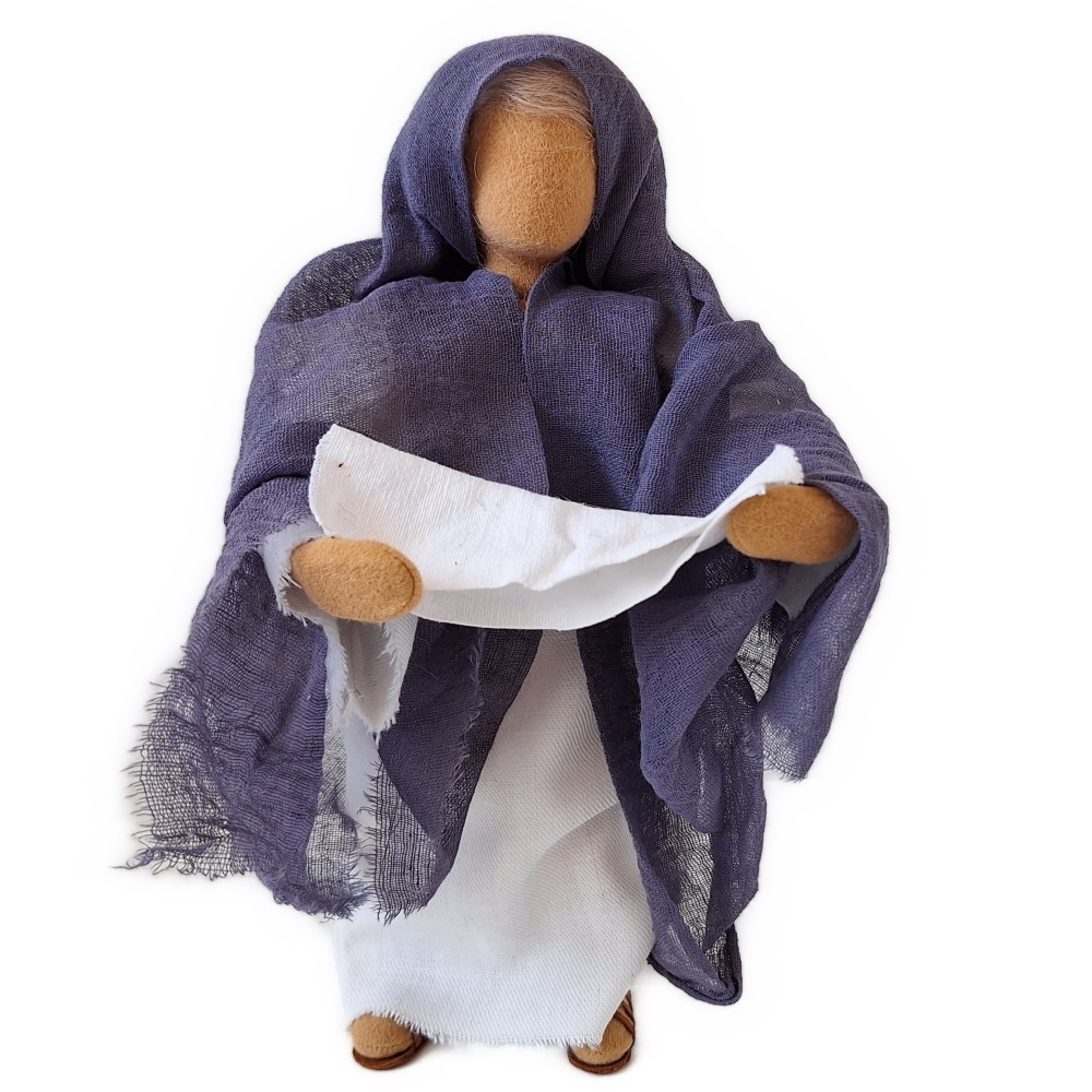 Sie ist schlicht gekleidet und in der Kreuzwegszene hat sie sich mit ihrem Tuch fest verhüllt.